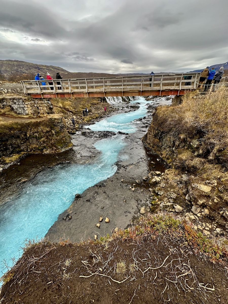 Also along the Golden Circle, Brúarfoss is famous for its bright blue color. This was another one of my favorites! You can get really close to this one because there are several inlets, and a bridge you can use to take great photos! The blue water is just mesmerizing!